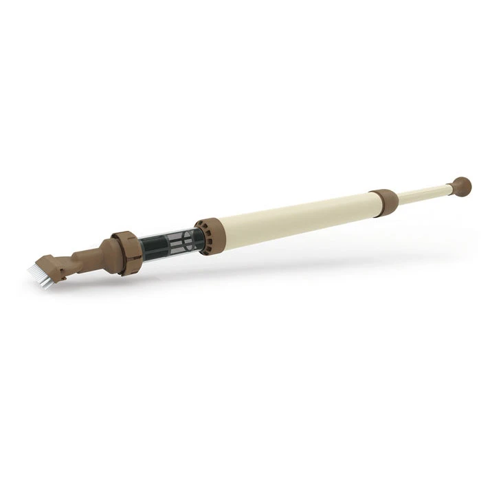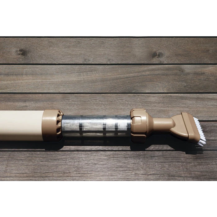 Équipé d’une mini pompe manuelle (sans tuyau ni câbles), celle-ci vous permettra d’aspirer les saletés dans le filtre transparent.