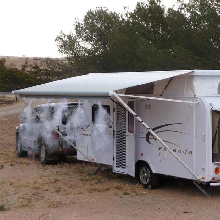Grâce à son installation en hauteur, la brume générée par ce brumisateur extérieur viendra rafraîchir votre terrasse : un endroit frais en quelques secondes.